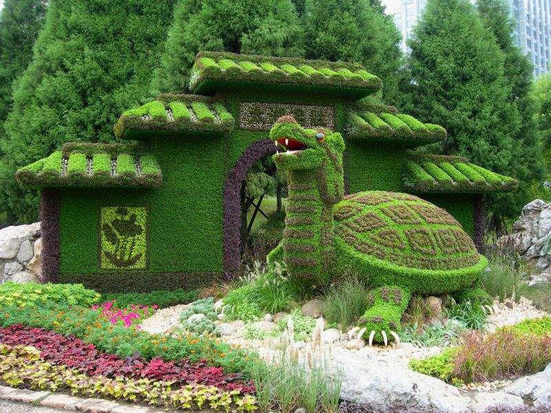 三、植物材料選用和栽植:傳統(tǒng)植物綠雕植物材料主要以五色草為主。五色草植株矮小,分枝力強(qiáng),枝繁葉密,耐修剪,葉色多變,色澤鮮艷,性喜溫暖而畏寒,耐干熱忌低溫,在含腐殖質(zhì)的肥美沙壤或壤土上成長(zhǎng)杰出。為了豐富色彩,可搭配選用金葉景天、佛甲草、彩葉草、四季海棠、仙人球等。植物材料應(yīng)選用穴盤(pán)苗,因其根部較小易于栽植,栽后緩苗期短。