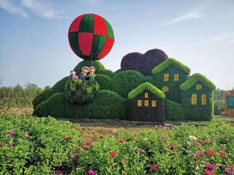 以熱氣球?yàn)橹黝}的城市綠雕立體花壇,以科技為主題的綠雕類型,使用仿真植物制作,科技感足,視覺沖擊力強(qiáng)。城市仿真綠雕的優(yōu)勢:
