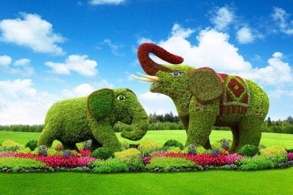 綠雕是一種公共藝術,要為廣大游客所授受,溶入到人群中去,所以綠雕應和周圍的空間環境高度一致,在主題表現、藝術形式、綠雕結構進行綜合的考慮和設計,使其彼此能營造一種文化氛圍,從而使綠雕主題得到表現,環境得到優化,景觀綠雕應為特定的景觀環境設計處創造,與環境成有機整體的結合。共同表現綠雕的藝術價值和影響力,使景觀的環境更具活力,成為景觀的核心點。