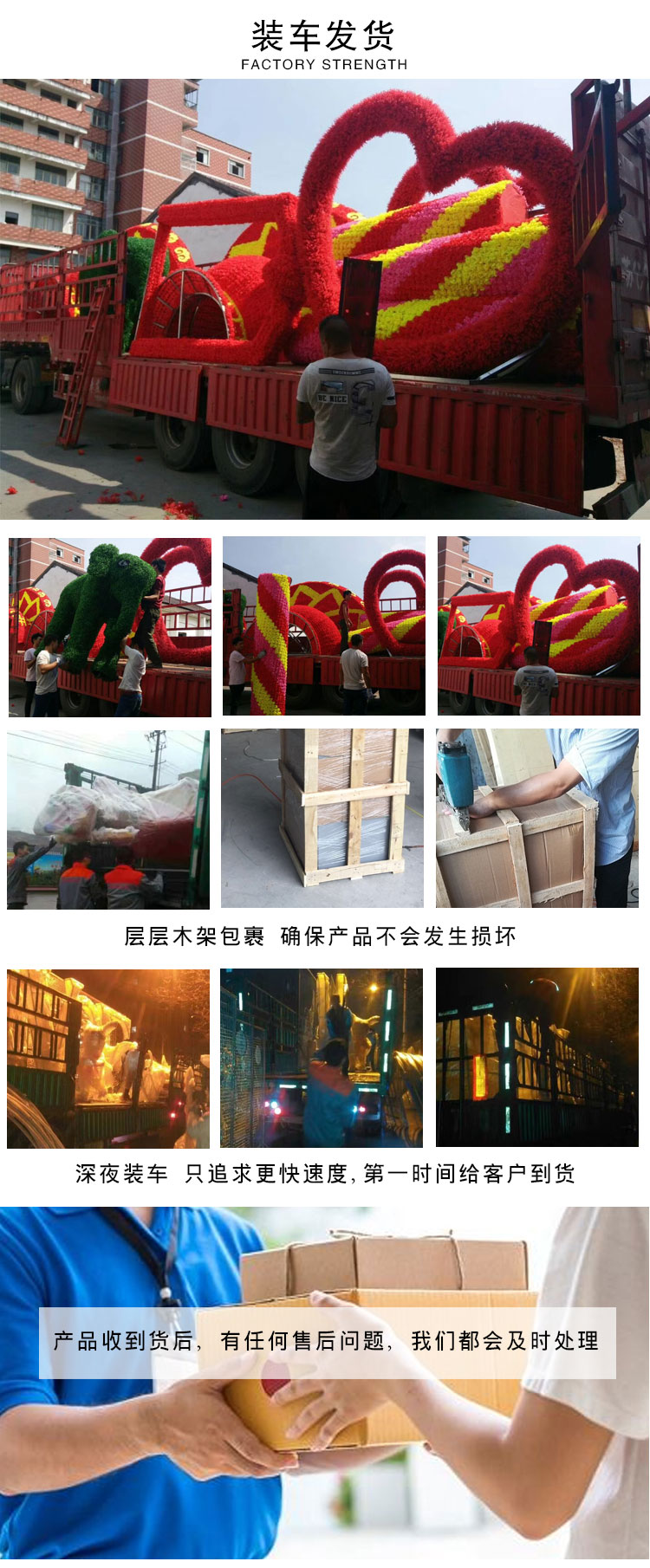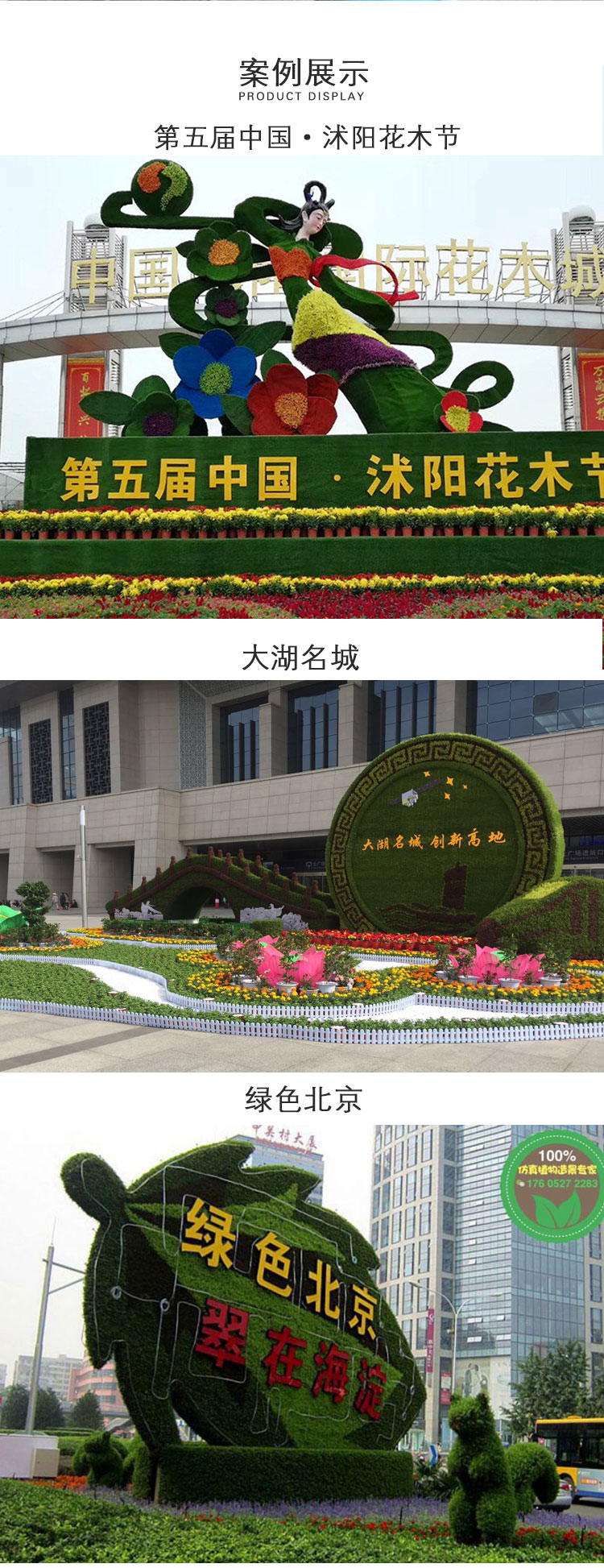立體花壇采用仿真植物材料,制作出各種造型的仿真綠雕,周圍搭配花草盆栽的使用,設計制作出具有觀賞性的立體花壇。仿真綠雕造假成本相對于真植物綠雕的成本要低,成品方便移動,同時能夠起到綠化周圍環境的效果,使用壽命長,減少人工維護的成本。
